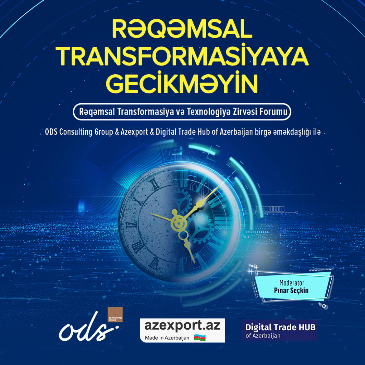 İqtisadi İslahatların Təhlili və Kommunikasiya Mərkəzinin rəqəmsal layihələri olan Azexport.az portalı və Rəqəmsal Ticarət Qovşağı ilə Türkiyənin “ODS Consulting Group” şirkətinin birgə təşkilatçılığı əsasında “Rəqəmsal Transformasiya və Texnologiya Zirvəsi Forumu” keçiriləcək. Forum rəqəmsal transformasiya və elektron ticarətin yaratdığı imkanlar, iki ölkə arasında ticarət əlaqələrinin genişləndirilməsi və ixracın təşviqi məqsədi daşıyır.
