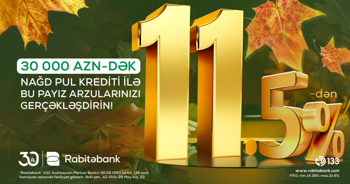 Müştərilərə ənənəvi və müasir maliyyə xidmətləri göstərən Rabitəbank nağd pul krediti üzrə “Payız Marafonu” kampaniyasına start verib.