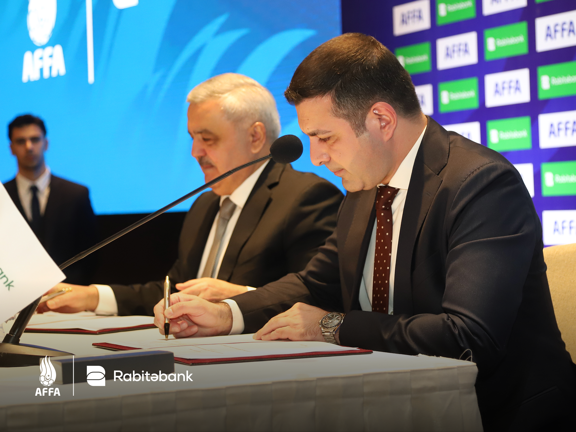 AFFA və “Rabitəbank” ASC arasında sponsorluq müqaviləsi imzalanıb. Müqaviləni AFFA-nın prezidenti Rövnəq Abdullayev və “Rabitəbank” ASC-nin İdarə Heyətinin sədri Aydın Hüseynov imzalayıblar. Sponsorluq müqaviləsinə əsasən, Azərbaycan Premyer Liqası oyunlarına təyinat alacaq peşəkar hakimlərin formalarının üzərində futbol ailəsinin yeni üzvü olan Rabitəbankın adı və loqosu əks olunacaq.