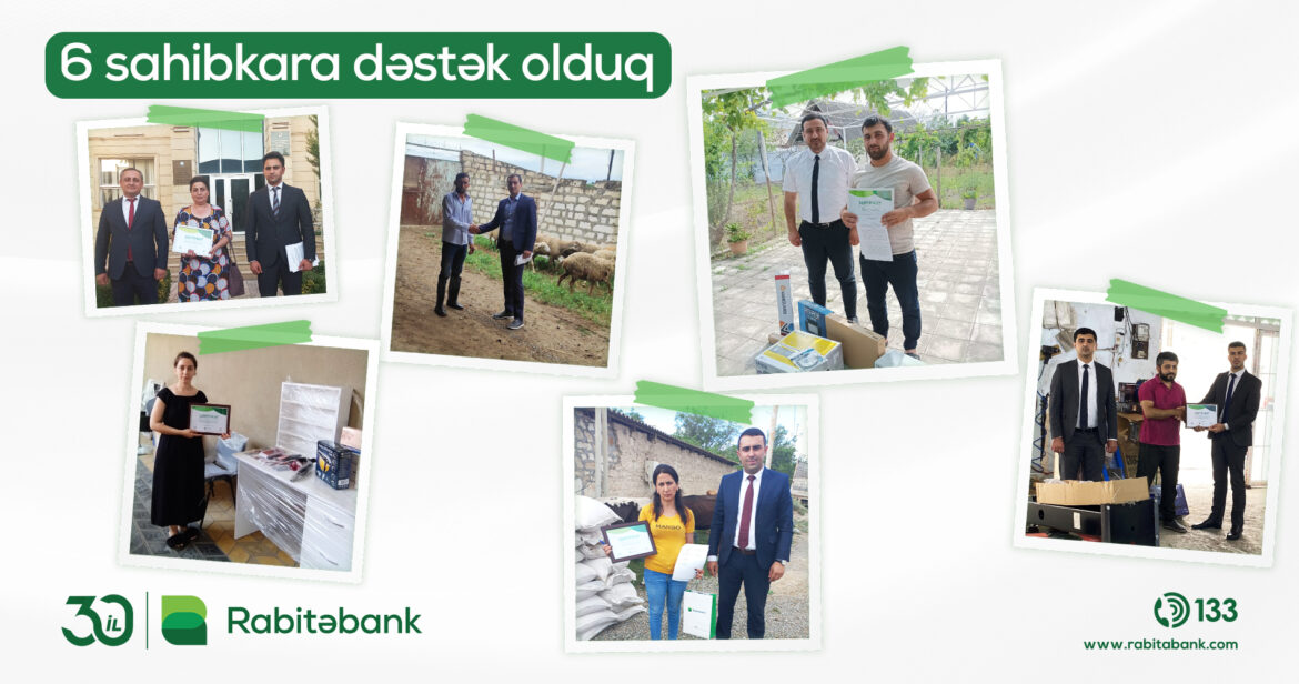 Rabitəbank, ölkədə qadın sahibkarlığının inkişafı istiqamətində öz töfhəsini verməyə davam edir. Belə ki, bank nümayəndələri özünüməşğulluq layihəsi çərçivəsində Əliyeva Şəlalə Fəxrəddin qızına maldarlıq təsərrüfatı, Ağaməmmədova Rəfiqə Nəsir qızına isə un məmulatları istehsalı üzrə şəxsi biznesini qurmaq üçün lazım olan avadanlıqları təqdim etdilər. Rabitəbank, həmçinin, gözəllik salonu açmaq istəyən Mustafazadə Aygün Aydın qızının arzusunu da həyata keçirməyə kömək oldu.