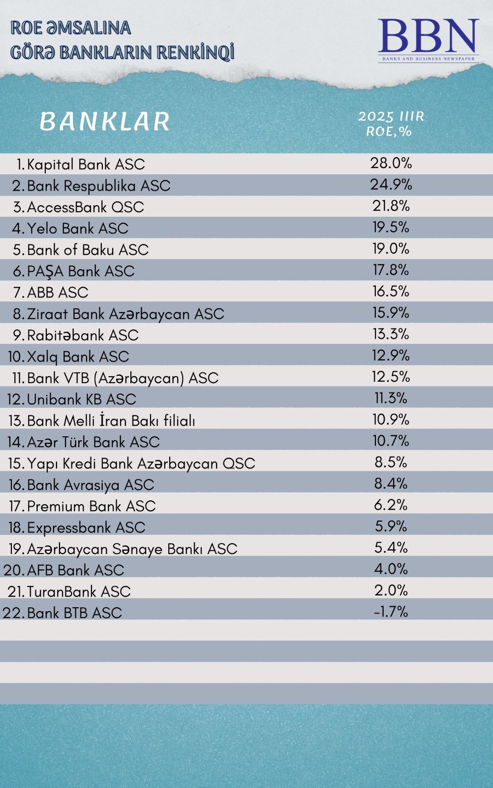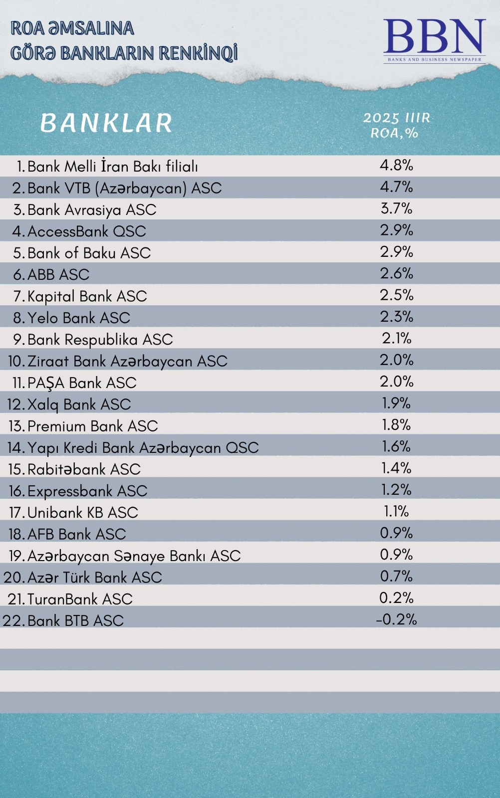 Banklar və Biznes nəşri BBN.az maliyyə göstəricilərini Azərbaycan Banklar Assosiasiyasına (ABA) təqdim etmiş bankların ROA və ROE əmsalına görə renkinqini təqdim edir.