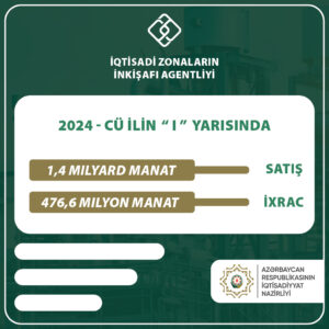 Sənaye zonaları istehsalın genişləndirilməsi, idxalın əvəz edilməsi və yeni ixrac imkanlarının yaradılması baxımından əlverişli mexanizmdir. 2015-ci ildən 2024-cü ilin I yarımili əriznde sənaye zonalarında 13,5 milyard manatlıq məhsul satışı həyata keçirilib, bunun da 4,4 milyard manatlıq hissəsi ixrac edilib. Həmçinin 2024-cü ilin birinci yarısında sənaye zonalarında 1,4 milyard manatlıq satış həyata keçirilib, bunun da 477 milyonluq hissəsi ixracın payına düşür.