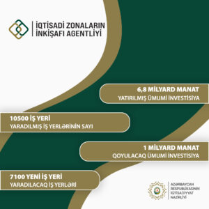 Eyni zamanda sənaye zonalarına sahibkarların cəlb edilməsi, investisiyaların yatırılması və yeni iş yerlərinin yaradılması istiqamətlərində müsbət addımlar atılır. 2013-cü ildən indiyədək sənaye zonaları üzrə ümumi investisiya həcmi 8,04 milyard manat olan 151 sahibkarlıq subyektinə rezident statusu verilib. Sahibkarlar tərəfindən sənaye zonalarına 6,8 milyard manatdan çox investisiya yatırılıb və 10500-dən çox daimi iş yeri yaradılıb. Mövcud layihələr üzrə növbəti mərhələdə sənaye zonalarına əlavə 1 milyard manata yaxın investisiyanın yatırılması və 7100-dən çox yeni iş yerinin yaradılması nəzərdə tutulur.