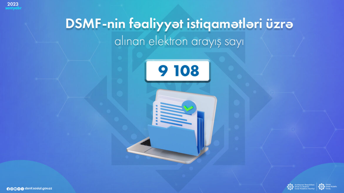 2023-cü ilin sentyabr ayı ərzində DSMF-nin fəaliyyət istiqamətləri üzrə 9 108 elektron arayış alınıb.