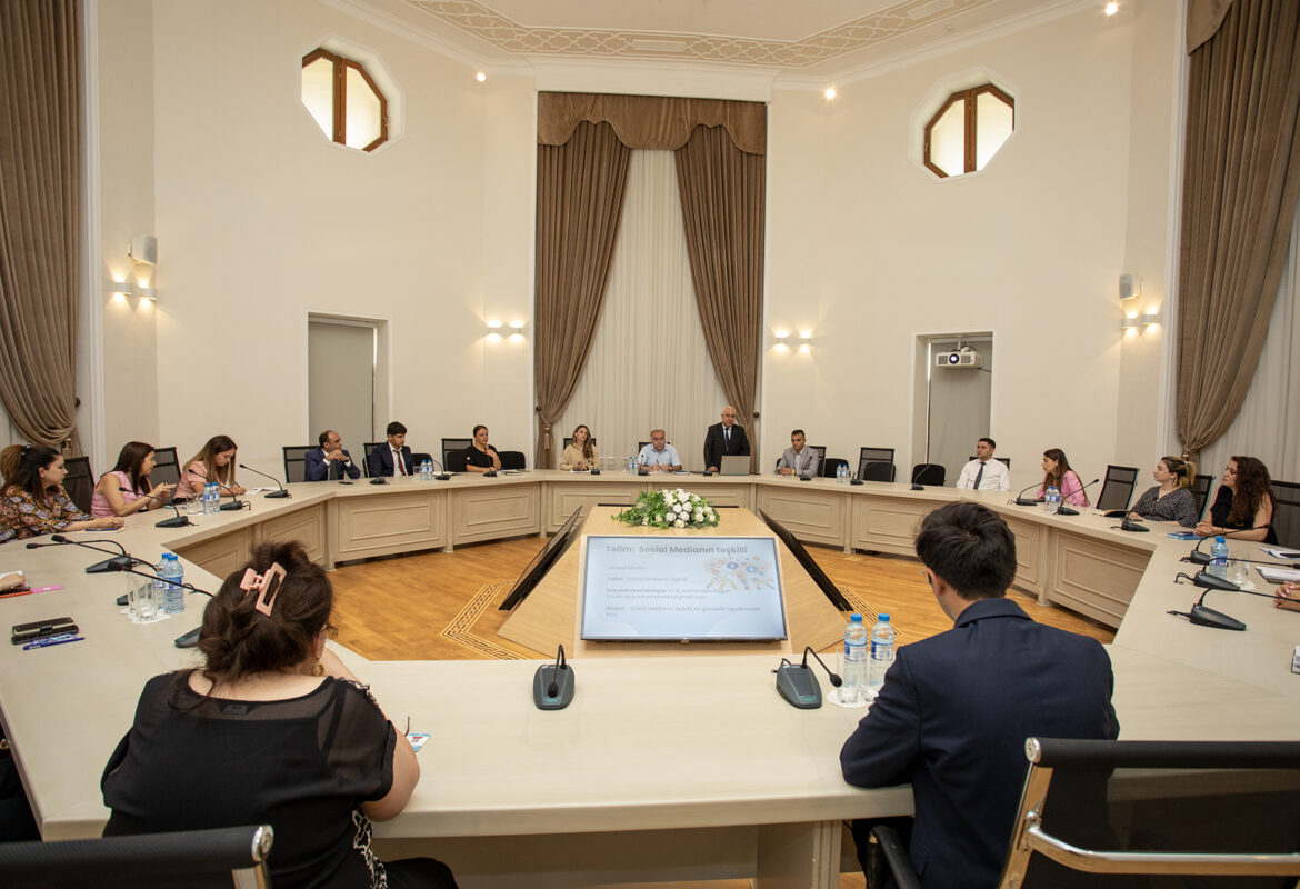 Universitetin əməkdaşları tərəfindən sosial medianın təşkili və gündəlik həyatımızda rolu, sosial media alətlərinin qurumların kommunikasiya fəaliyyətində istifadəsi, kontent növləri və yaradılması strategiyası, sosial media kanallarının düzgün idarə edilməsi, facebook reklam menecerində büdcənin müəyyənləşdirilməsinin əhəmiyyəti, rəqəmsal platformalarda hədəf kütlənin dəqiq seçilməsinin üstünlükləri haqqında iştirakçılara ətraflı məlumat verilib, aidiyyəti suallar cavablandırılıb, əməkdaşlar arasında komanda tapşırıqları icra edilib.