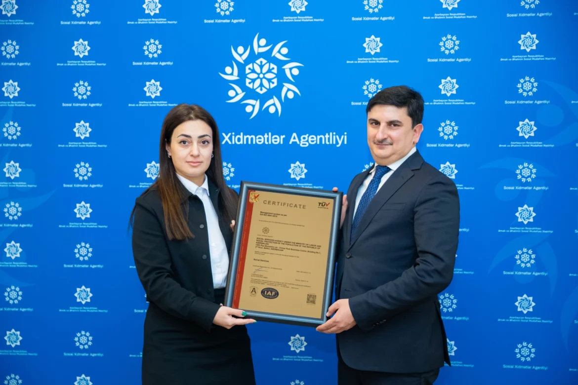 Əmək və Əhalinin Sosial Müdafiəsi Nazirliyinin tabeliyindəki Sosial Xidmətlər Agentliyi “TÜV Austria” sertifikatlaşdırma şirkəti tərəfindən 2 istiqamət üzrə ISO sertifikatlarına layiq görülüb.