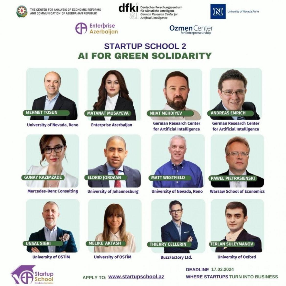 İqtisadi İslahatların Təhlili və Kommunikasiya Mərkəzinin operatoru olduğu “Enterprise Azerbaijan” portalının Almaniyanın Süni İntellekt Araşdırma Mərkəzi və ABŞ-ın Nevada Universitetinin Özmən Sahibkarlıq Mərkəzi ilə birgə həyata keçirdiyi “Startup School 2 – AI for Green Solidarity” layihəsinin təlim mərhələsində iştirak edəcək komandaların sayı 41-ə çatdırılıb. İlk mərhələdə seçilmiş 28 komanda ilə birlikdə daha 13 komanda dünyanın tanınmış mentorlarının iştirakı ilə aprel və may aylarında keçiriləcək təlimlərə qatılacaqlar. Bununla bağlı layihənin münsiflər heyəti qərar qəbul edib.