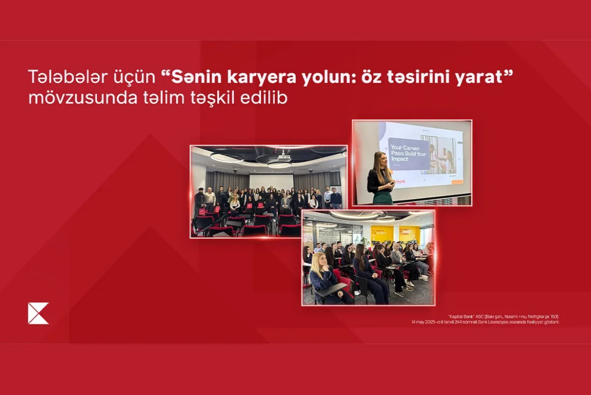 Əməkdaşlığın davamı olaraq 25 fevral 2026-cı il tarixində Təhsil Tələbə Kredit Fondunun təhsil kreditindən yararlanan tələbə və məzunları üçün “Sənin karyera yolun: öz təsirini yarat” mövzusunda təlim keçirilib. Təlim Kapital Bank-ın İstedadların idarə edilməsi departamentinin İstedadların cəlbi və seçimi şöbəsinin müdiri Nərgiz Əzimova tərəfindən aparılıb.