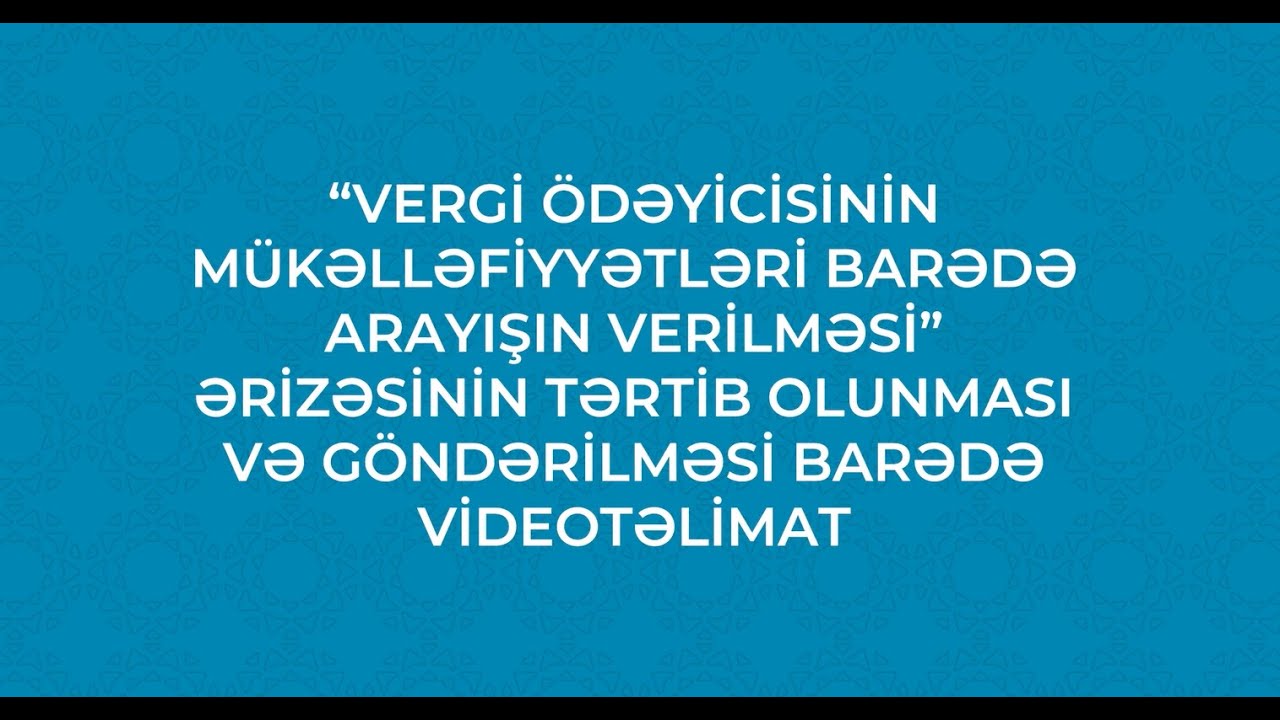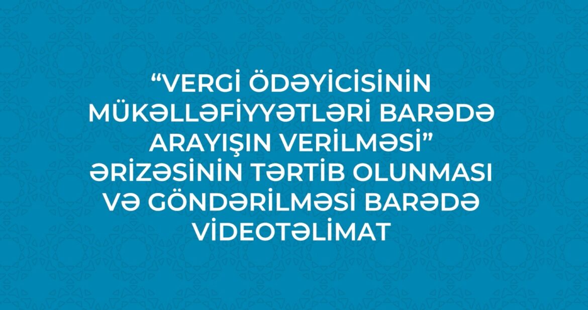 İqtisadiyyat Nazirliyi yanında Dövlət Vergi Xidməti tərəfindən hazırlanmış yeni videotəlimatda “Vergi ödəyicilərinin mükəlləfiyyətləri barədə arayışın verilməsi” ərizəsinin tərtib edilməsi və göndərilməsi qaydası izah edilir. Vergi ödəyiciləri və onların səlahiyyətli nümayəndələri gücləndirilmiş elektron imzalar vasitəsilə İnternet Vergi İdarəsindəki elektron kabinetə daxil olmaqla “Vergi ödəyicilərinin mükəlləfiyyətləri barədə arayışın verilməsi” ərizəsini tərtib edə və göndərə bilərlər.