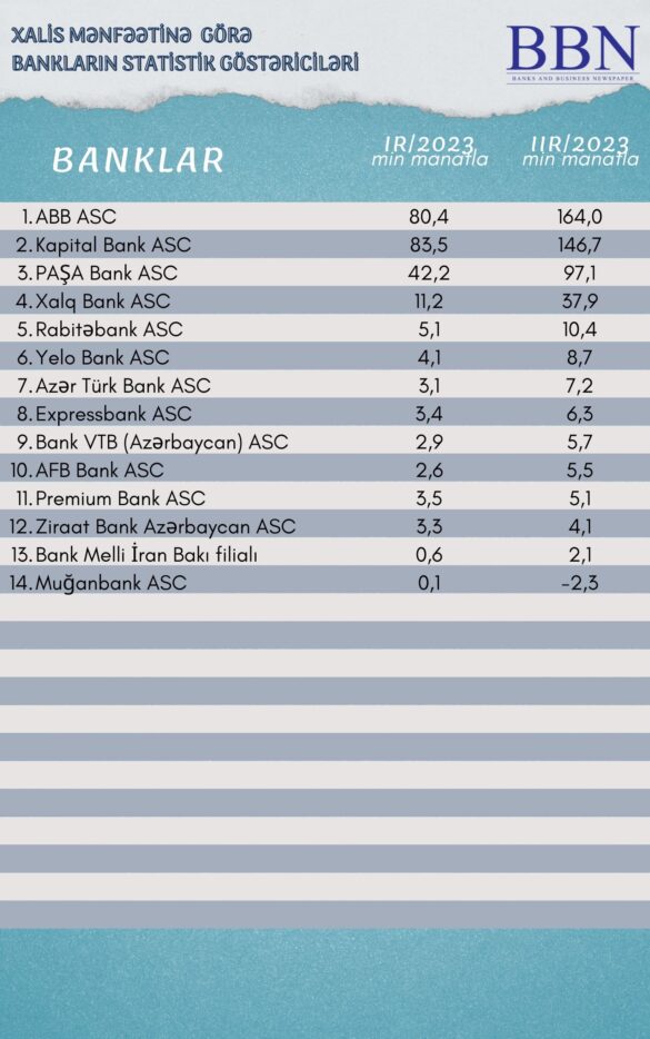 Qeyd edək ki, bu sıralama ABA tərəfindən hazırlanan bankların 2023-cü ilin II rübü üzrə maliyyə göstəricilərini əhatə edən rüblük hesabatı əsasında formalaşdırılmışdır.