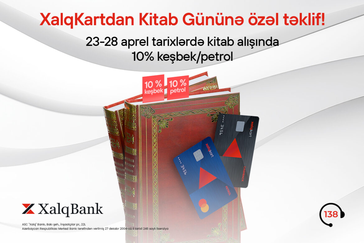 XalqKart sahibləri 23 aprel – Dünya Kitab və Müəlliflik Hüququ Günü münasibətilə 23-28 aprel tarixlərdə XalqKart-la kitab alışlarında 10% keşbek/petrol qazanacaqlar.