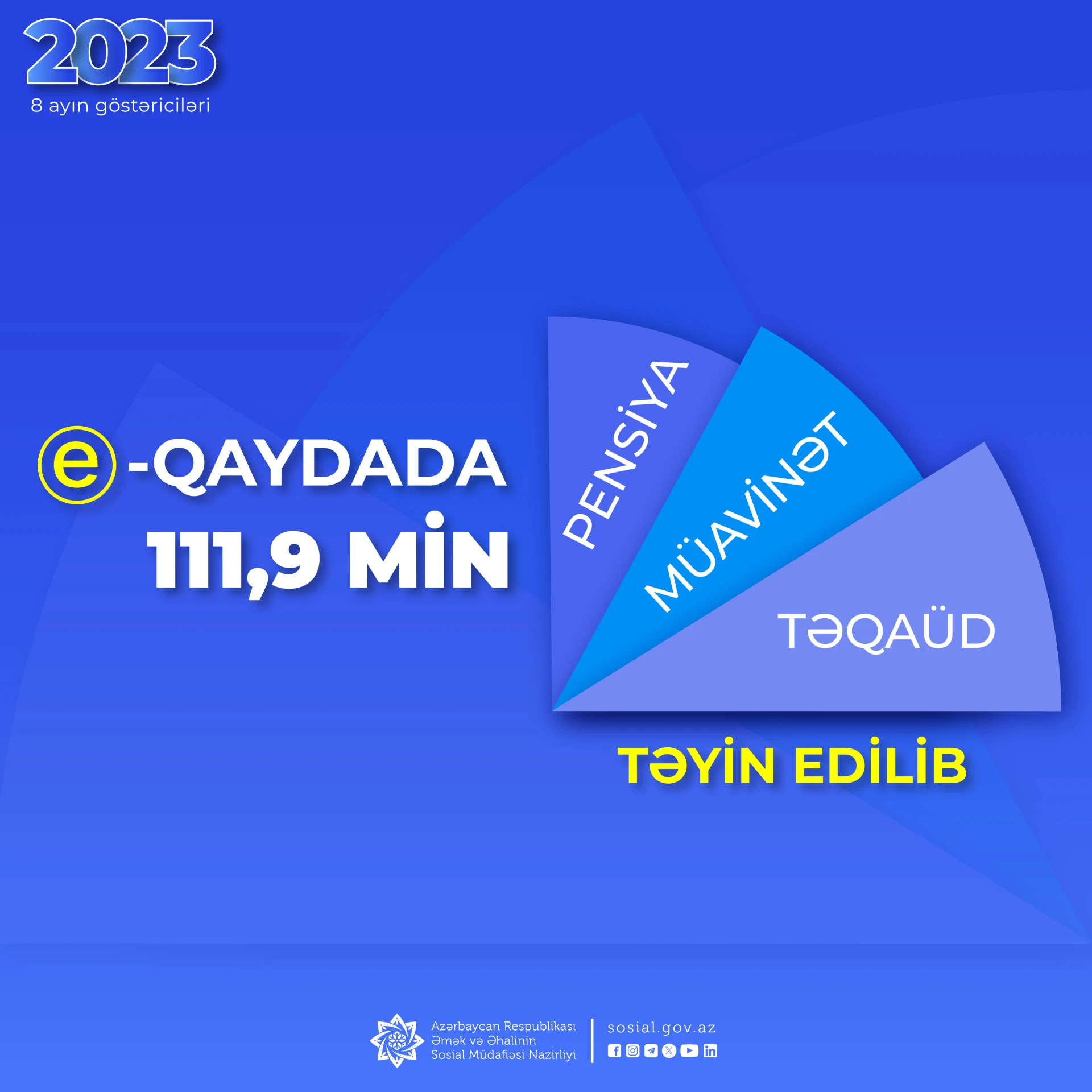 Bu ilin yanvar-avqust aylarında 111,9 min pensiya, müavinət və təqaüd təyinatı elektron infrastruktur üzərindən, proaktiv qaydada həyata keçirilib.