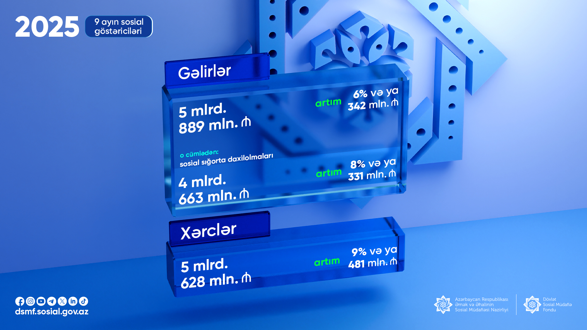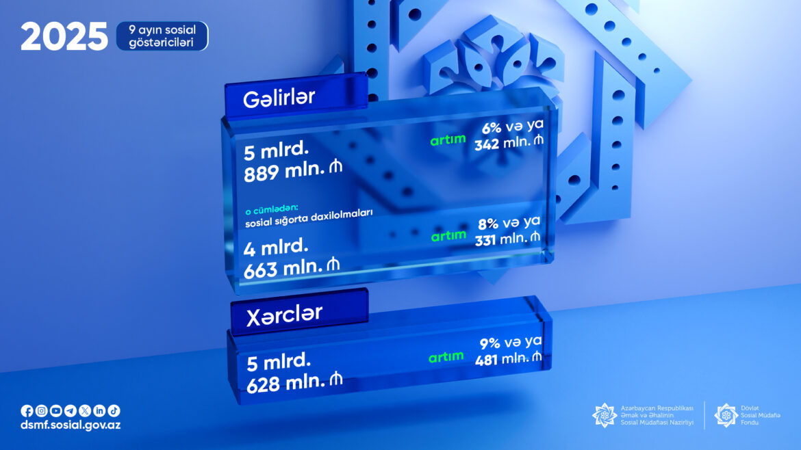 Yanvar-sentyabr aylarında DSMF-nin xərcləri 5 mlrd. 628 mln. manat təşkil edib ki, bu da ötən ilin müvafiq dövrünə nisbətən 9 faiz və ya 481 mln. manat çoxdur.