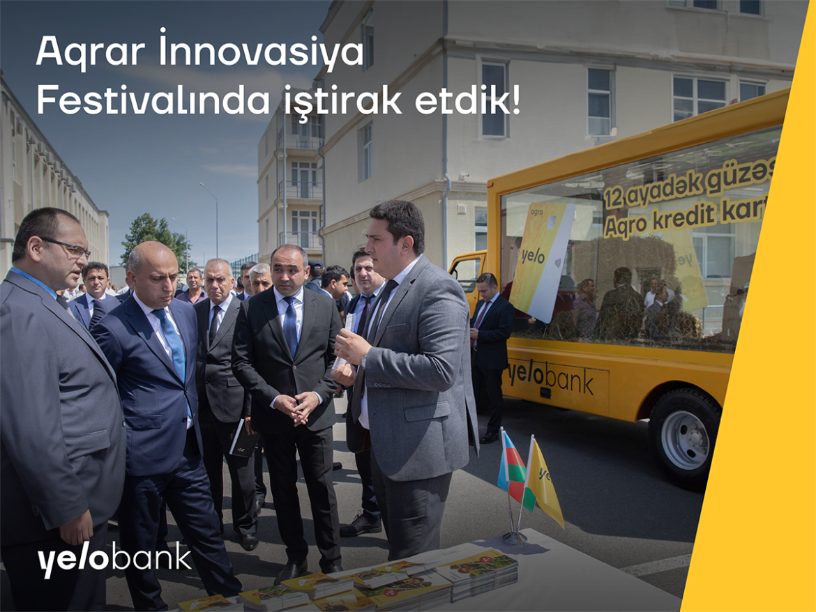Fermerlərə və sahibkarlara dəstəyi ilə seçilən Yelo Bank Bərdə rayonunda böyük maraqla gözlənilən Aqrar İnnovasiya Festivalına qatılıb. Kənd Təsərrüfatı, Elm və Təhsil nazirliklərinin birgə təşkilatçılığı ilə keçirilən festivalda 1200-dən çox fermer və 300-dən çox peşə liseyi şagirdi iştirak edib. Festivalda Yelo Bank innovativ həllərlə yanaşı, aqrar təsərrüfatla məşğul olan sahibkarların ehtiyacları üçün xüsusi olaraq hazırlanmış müasir Aqro kredit kartını təqdim etdi. Bu kart fermerlerlərə çevik ödəmə imkanı, rəqabətqabiliyyətli faiz dərəcələri və eksklüziv güzəştlər təklif edir. 5000 AZN-dək kredit limiti olan Aqro kredit kartının əsas üstünlüyü güzəşt müddətinin kartla nağdlaşdırılmış hər vəsaitə şamil olunmasıdır. Qeyd edək ki, Aqro kredit kartı pulsuzdur. Kart vasitəsilə Yelo Bank ATM və ofislərindən, həmçinin Azərpoçt ATM-lərindən nağdlaşdırma komissiyasızdır.