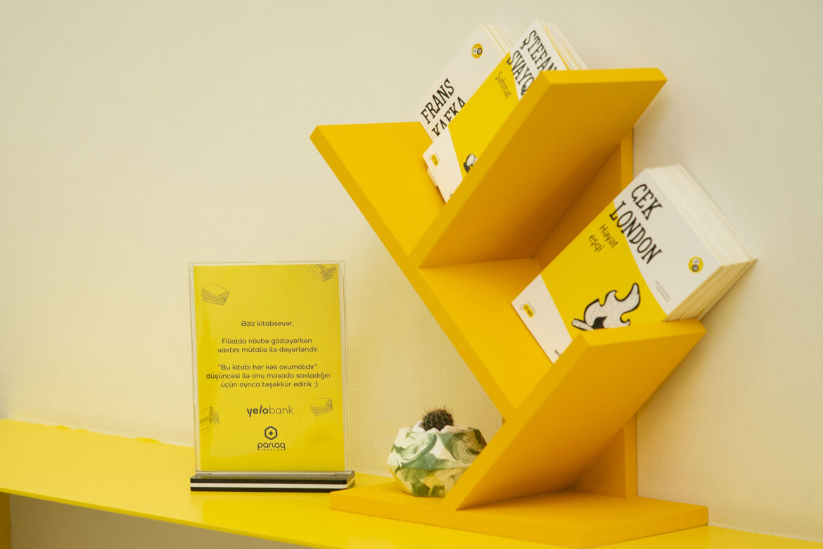 Yelo Bank innovativ və düşünülmüş layihələri ilə müştəri məmnuniyyətini artırmağa davam edir. Bu təşəbbüsün davamı kimi “Parlaq İmzalar” nəşriyyatı ilə birlikdə əməkdaşlıq layihəsi həyata keçirib. Artıq Bankın yeni konseptli xidmət mərkəzlərində növbə gözləyərkən kitab oxuya bilərsiniz. Layihənin əsas məqsədi müştərilər üçün filiallarda qonaqpərvər mühit yaratmaq və onların vaxtını mütaliə ilə səmərəli dəyərləndirməyə həvəsləndirməkdir.